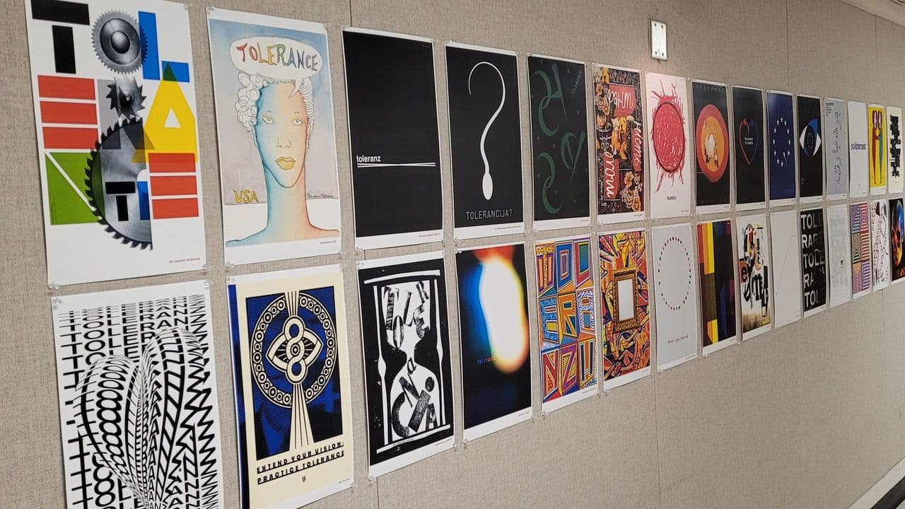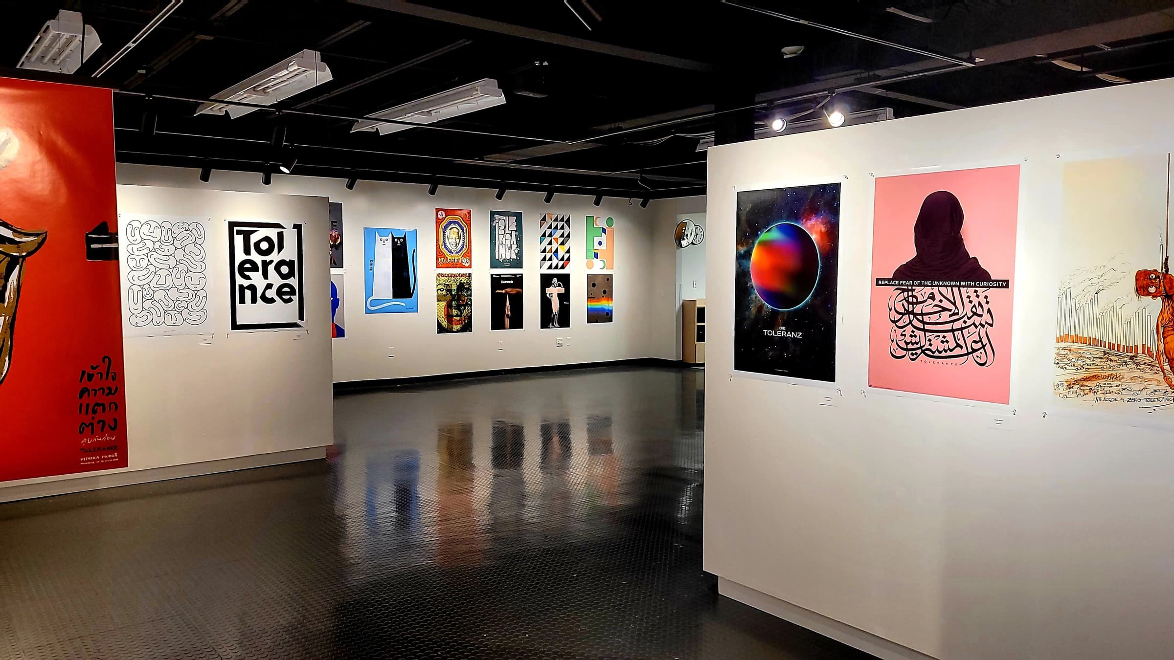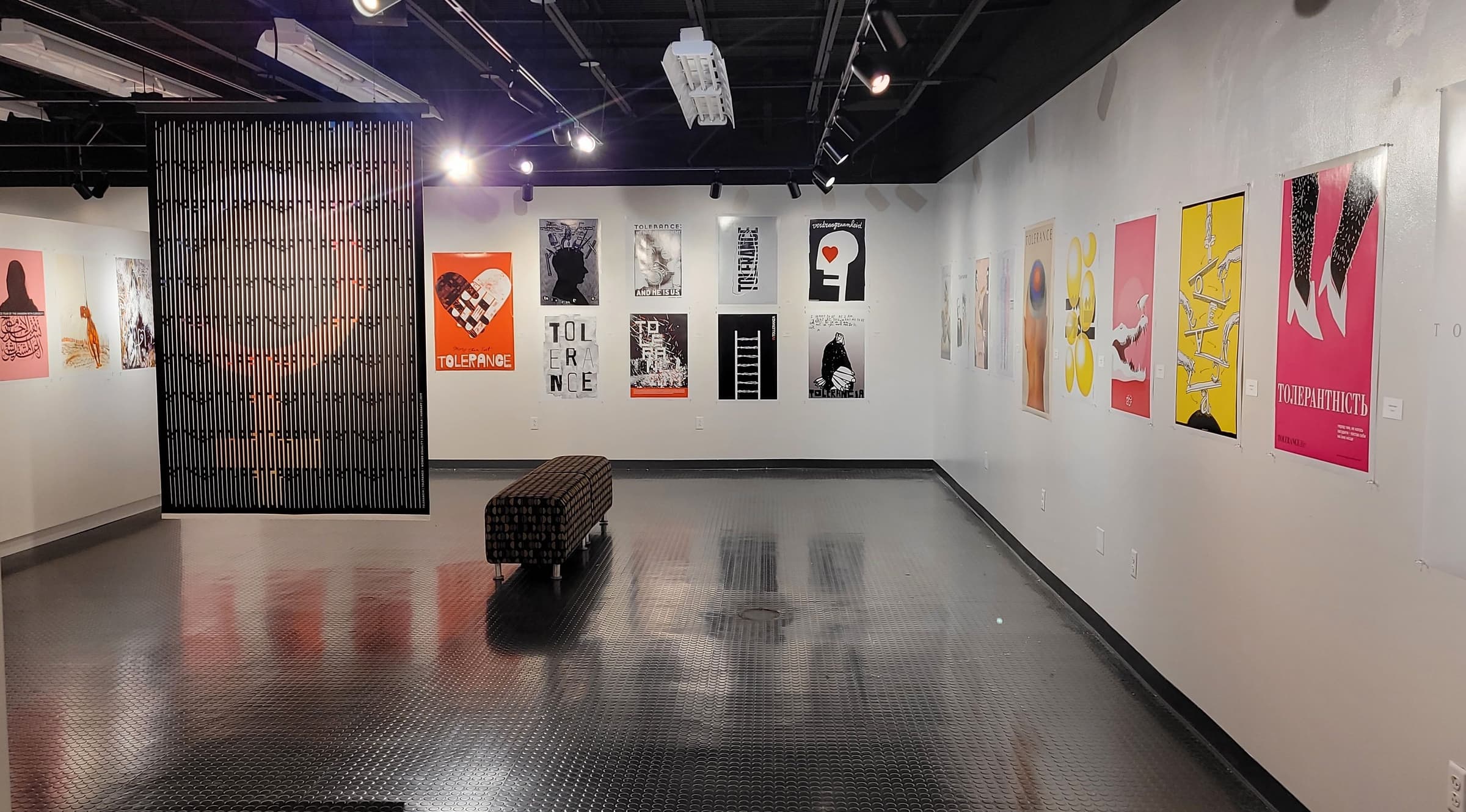 On January 27th, the Tolerance Poster Show took place at St. Louis Community College - Meramec in St. Louis, Missouri. The exhibition features a full gallery show in the Meramec Contemporary Art Gallery, with additional posters displayed at various public spaces throughout the campus. The gallery exhibition will be on display until February 18th, and the public-space posters will remain in place until May 2022.
