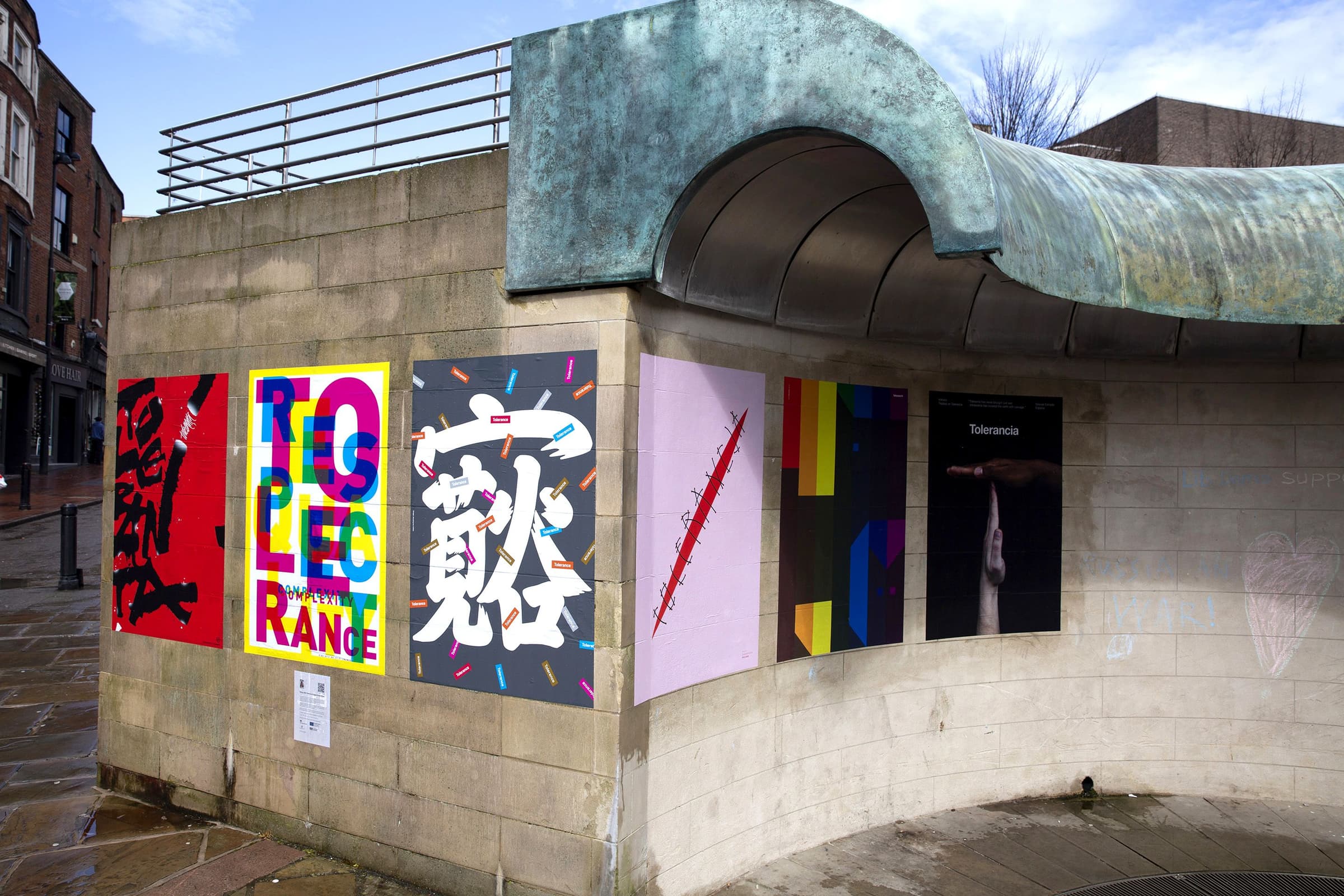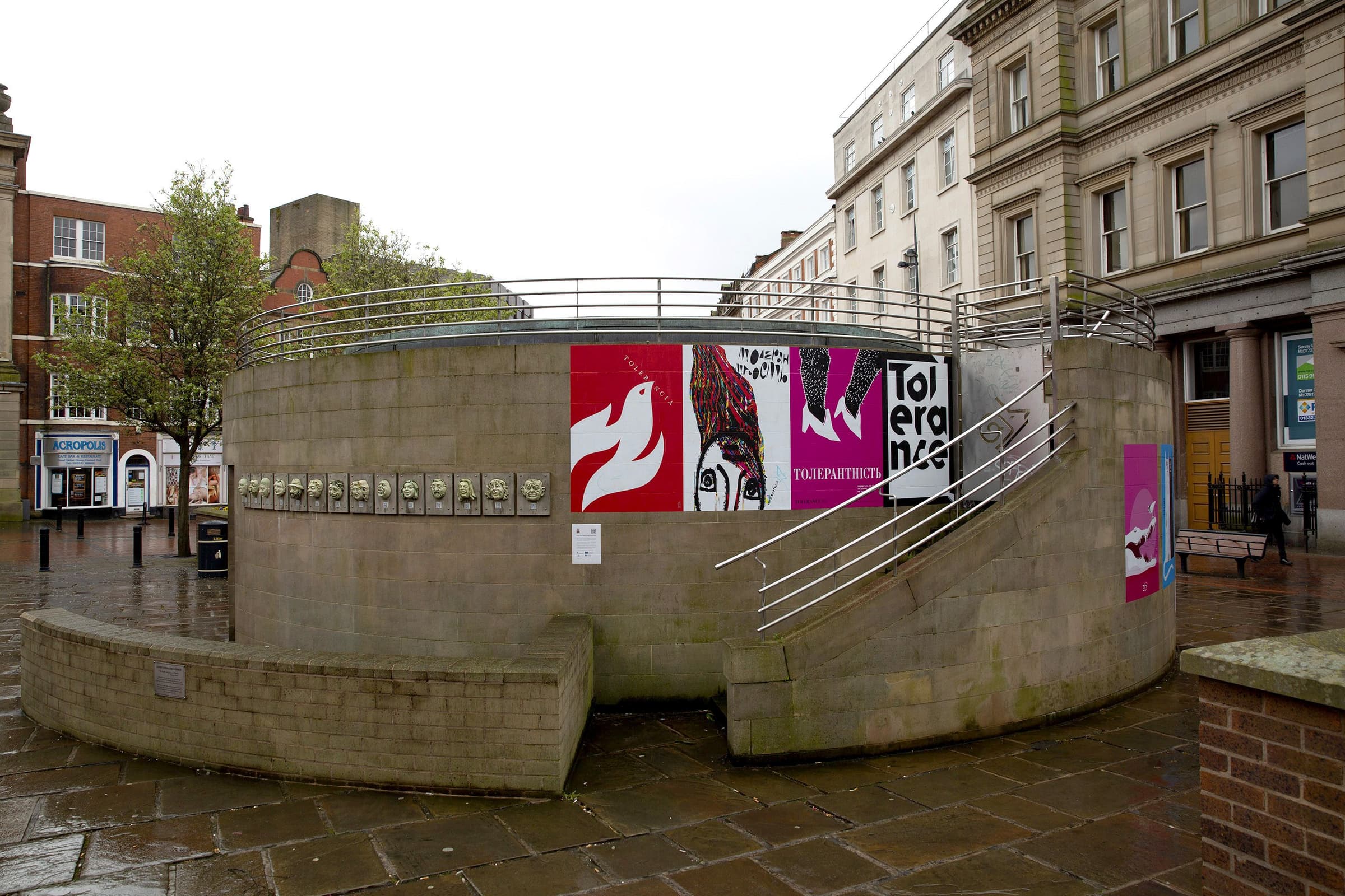 On April 1st 2022, the Tolerance Poster Show opened in Derby, a city in the East Midlands region of England. Posters are on display in shops, restaurants, hoardings and cultural landmarks in the city’s Cathedral Quarter.
