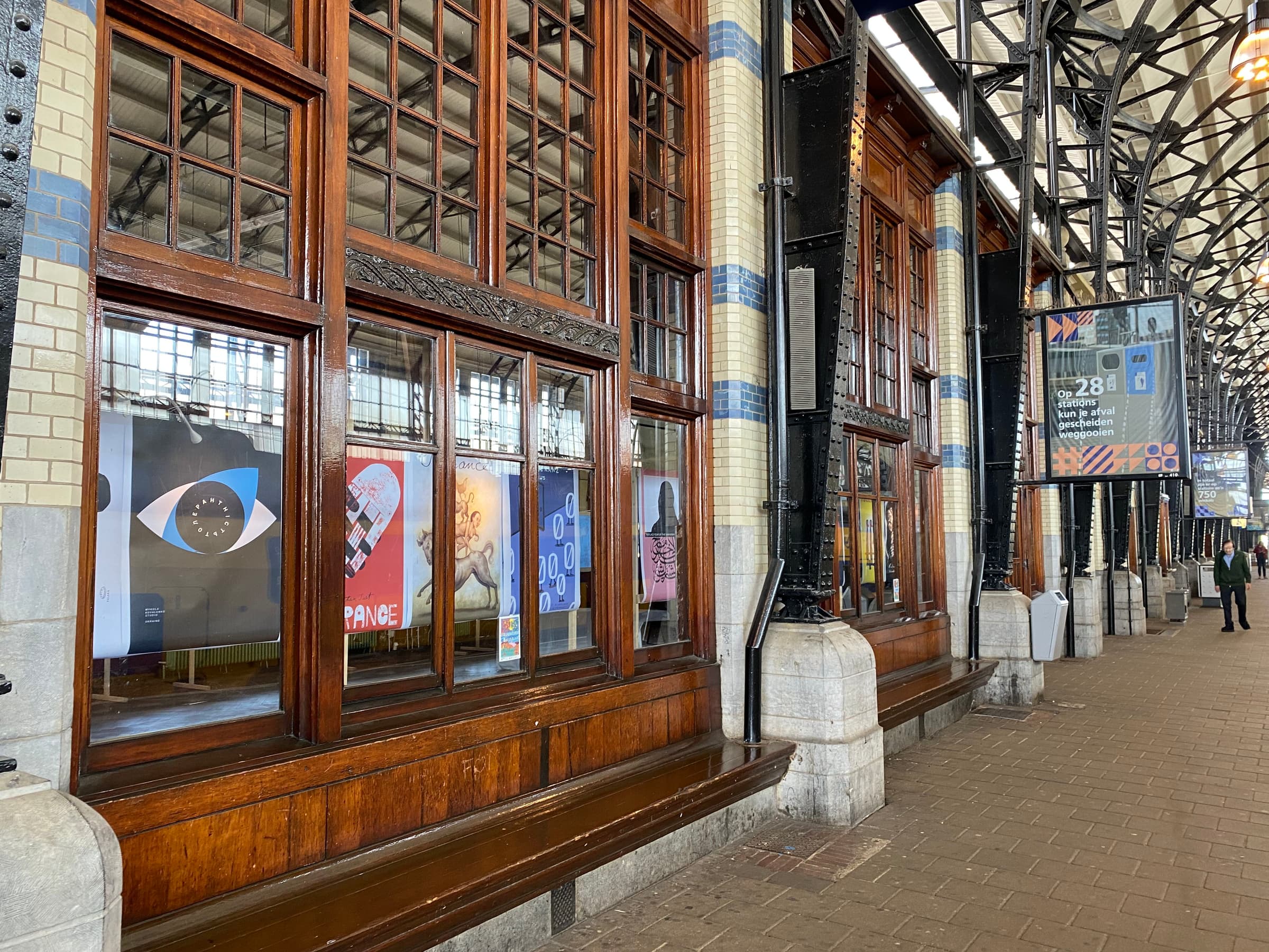 A temporary construction has been made for the exhibition in this monumental station in one of the city's most striking buildings. More posters were shown in a café and exhibition in De Schuur, Haarlem. The show was a part of the Illustratie Biennale festival that took place on June 10th and 11th, 2023.