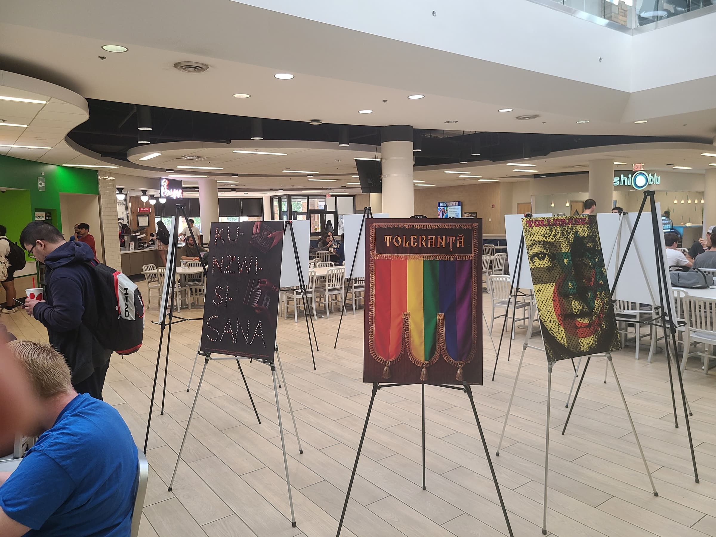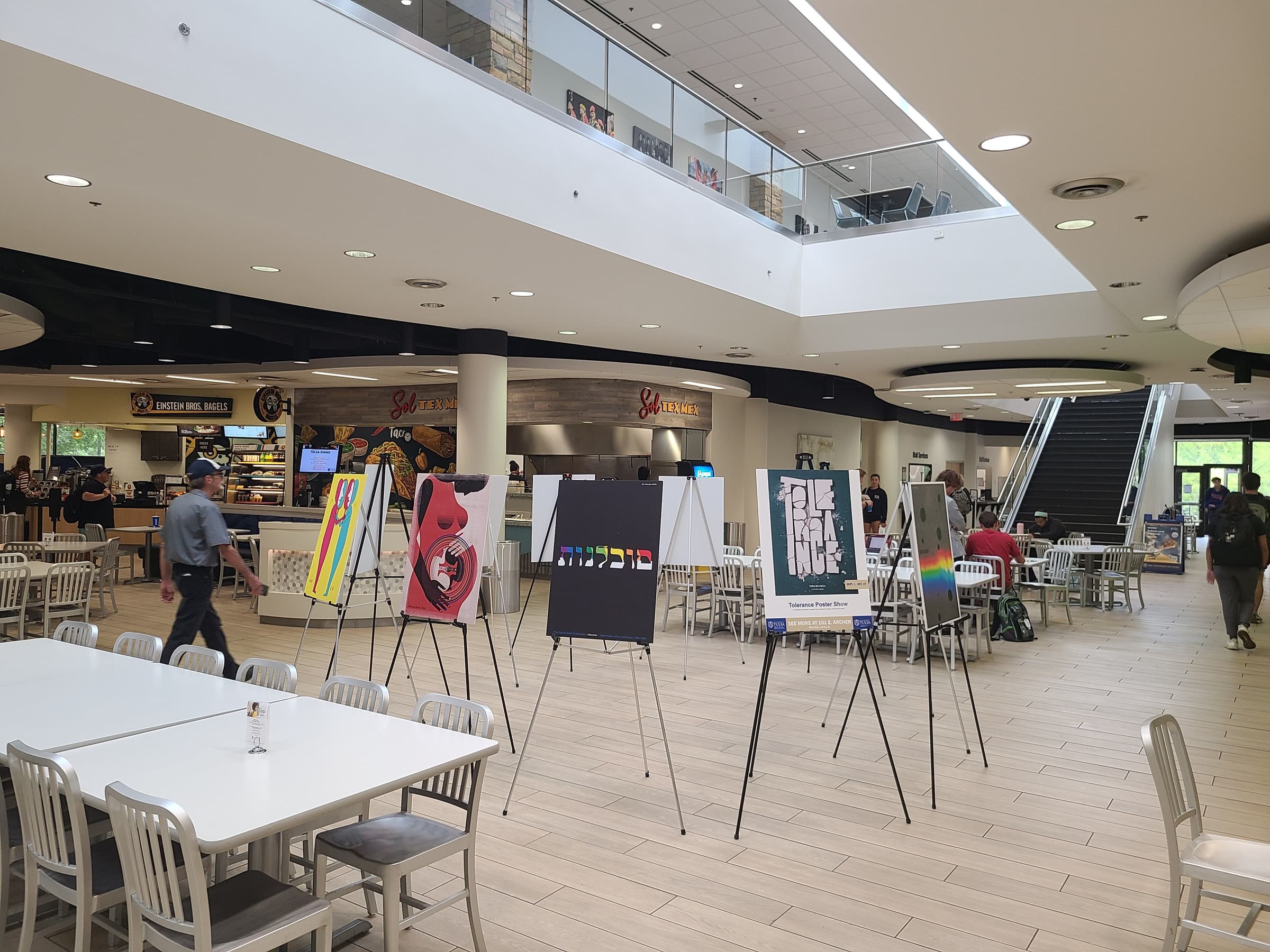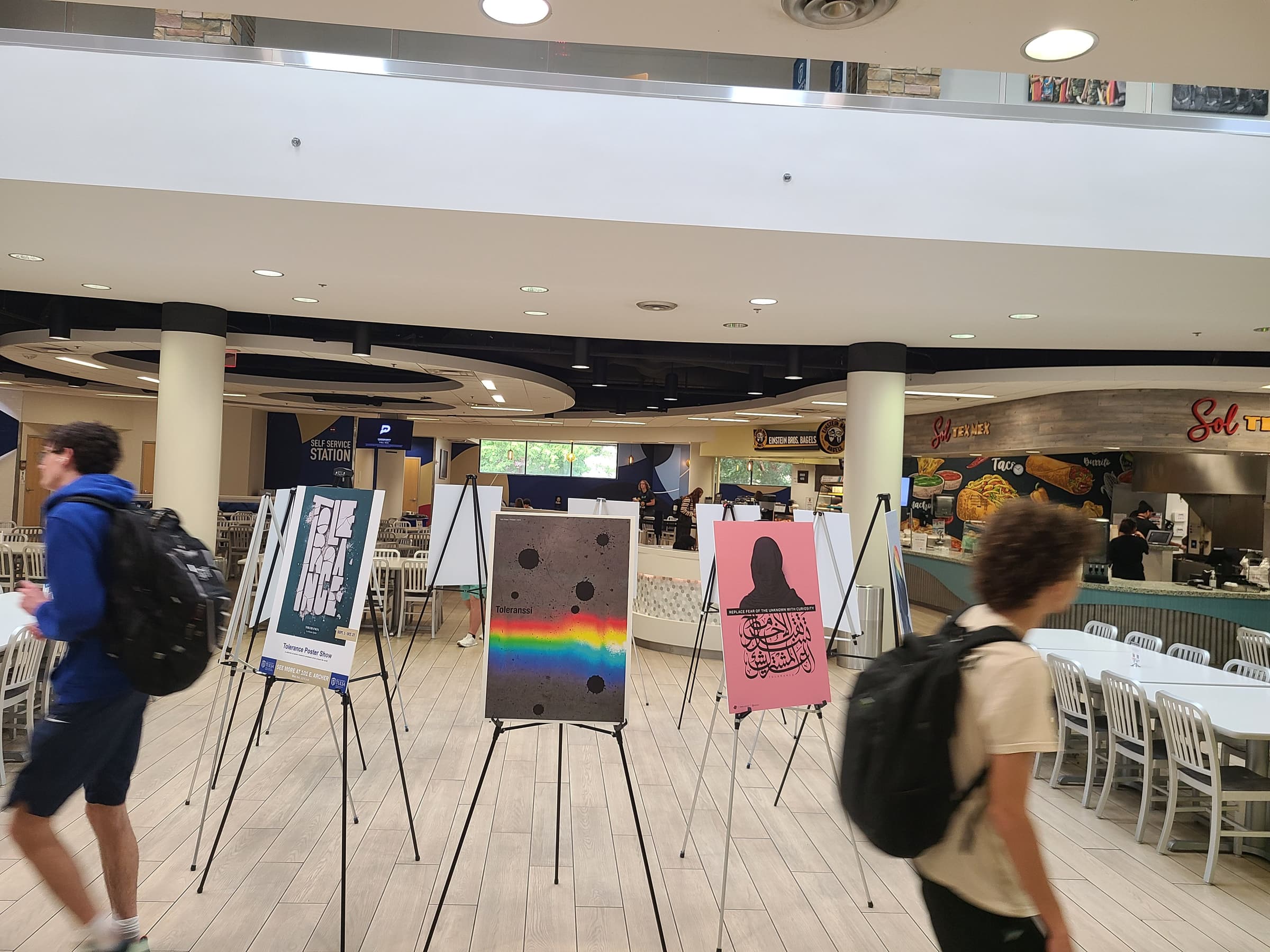 In addition to the posters displayed at the University's 101 E. Archer building, there was an on-campus display at the Allen Chapman Student Union.