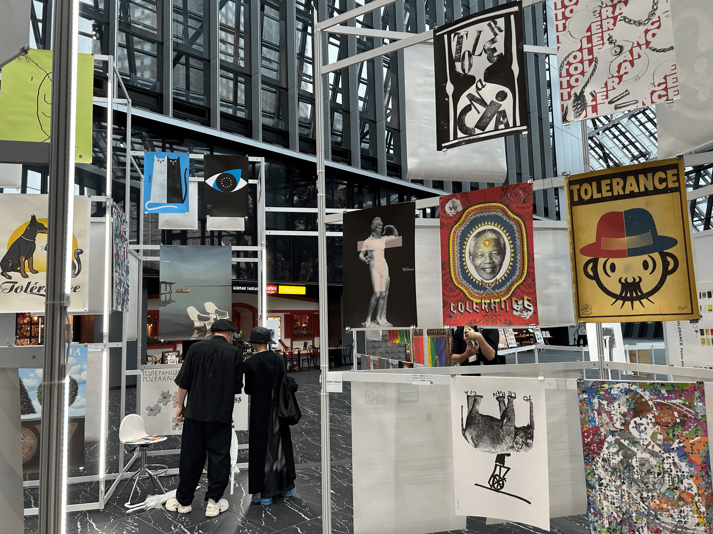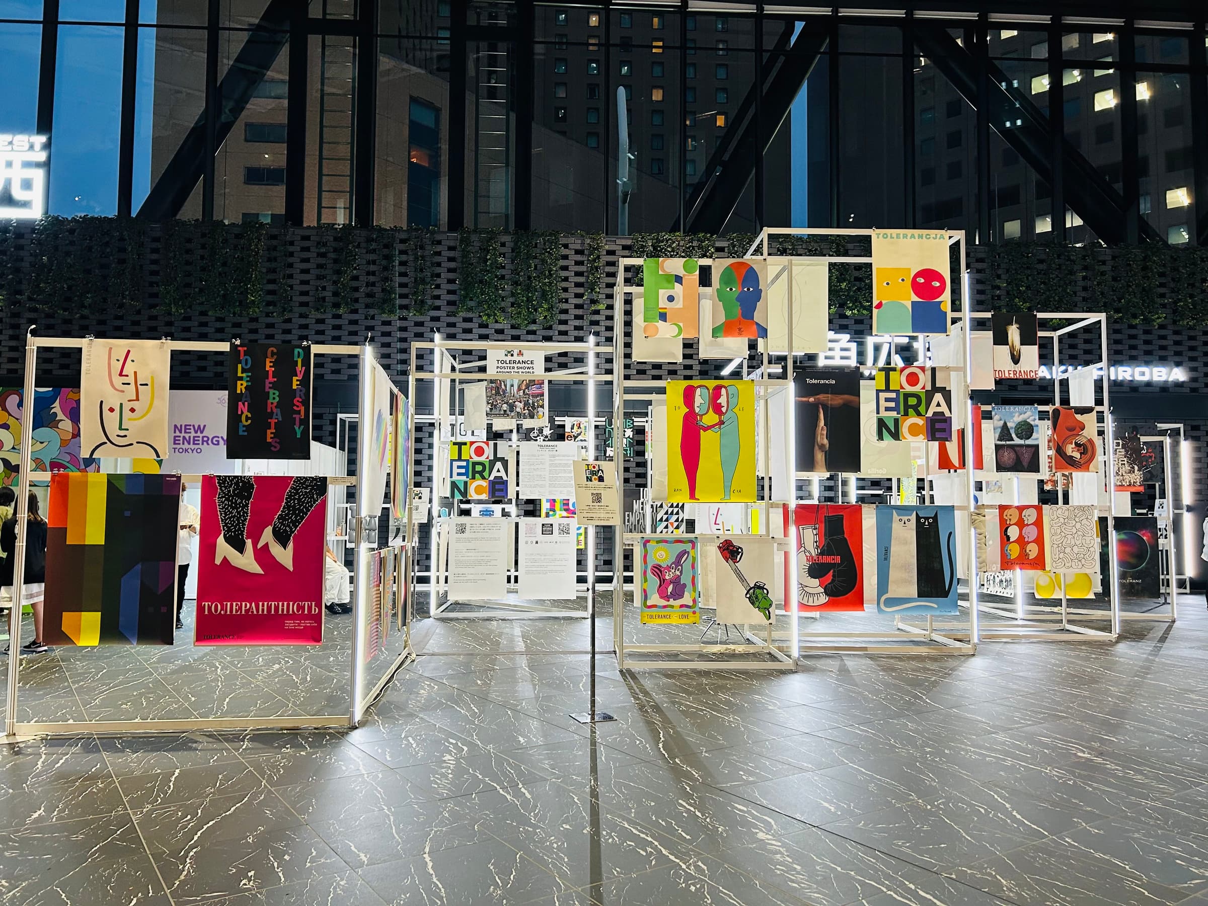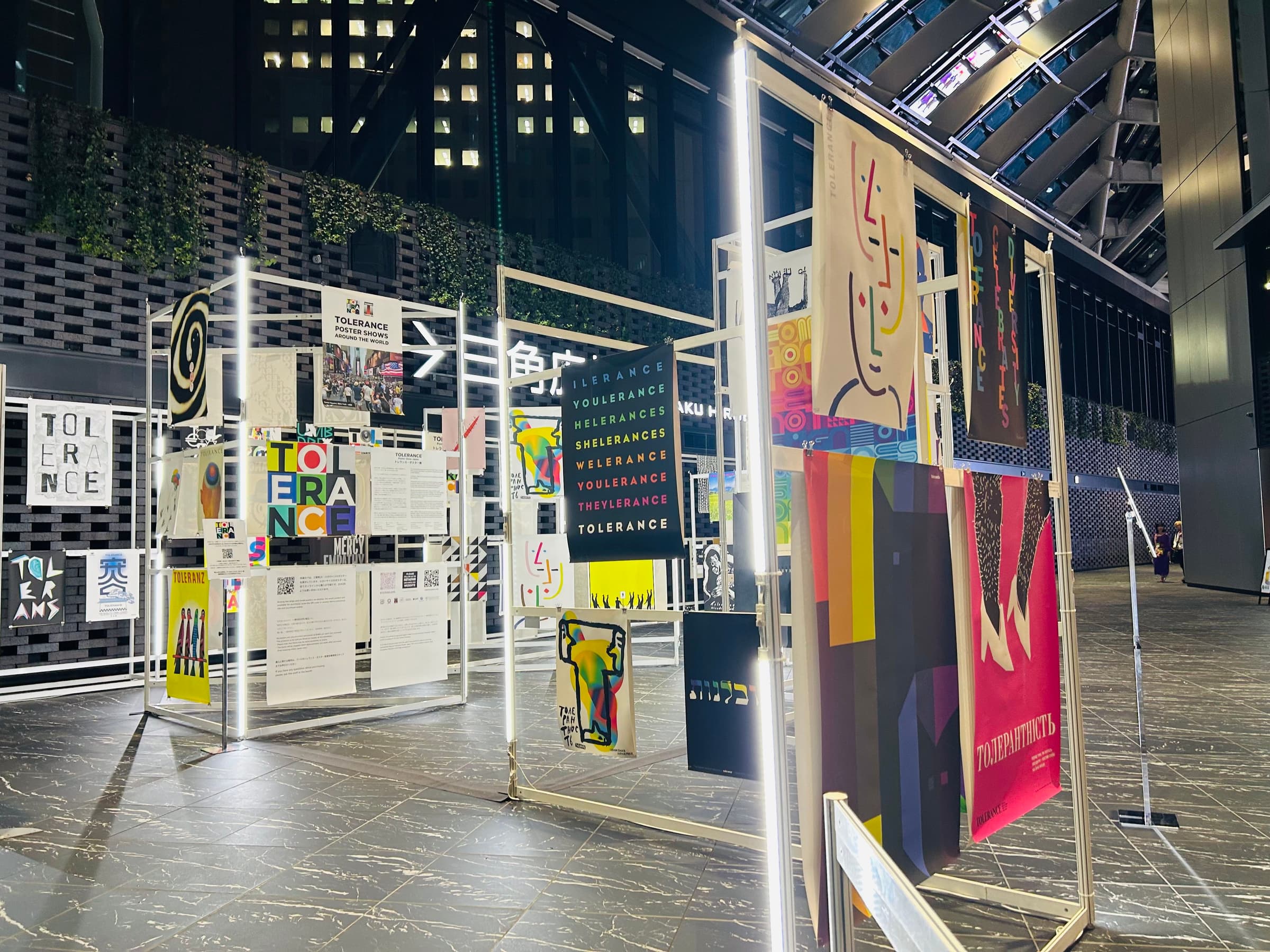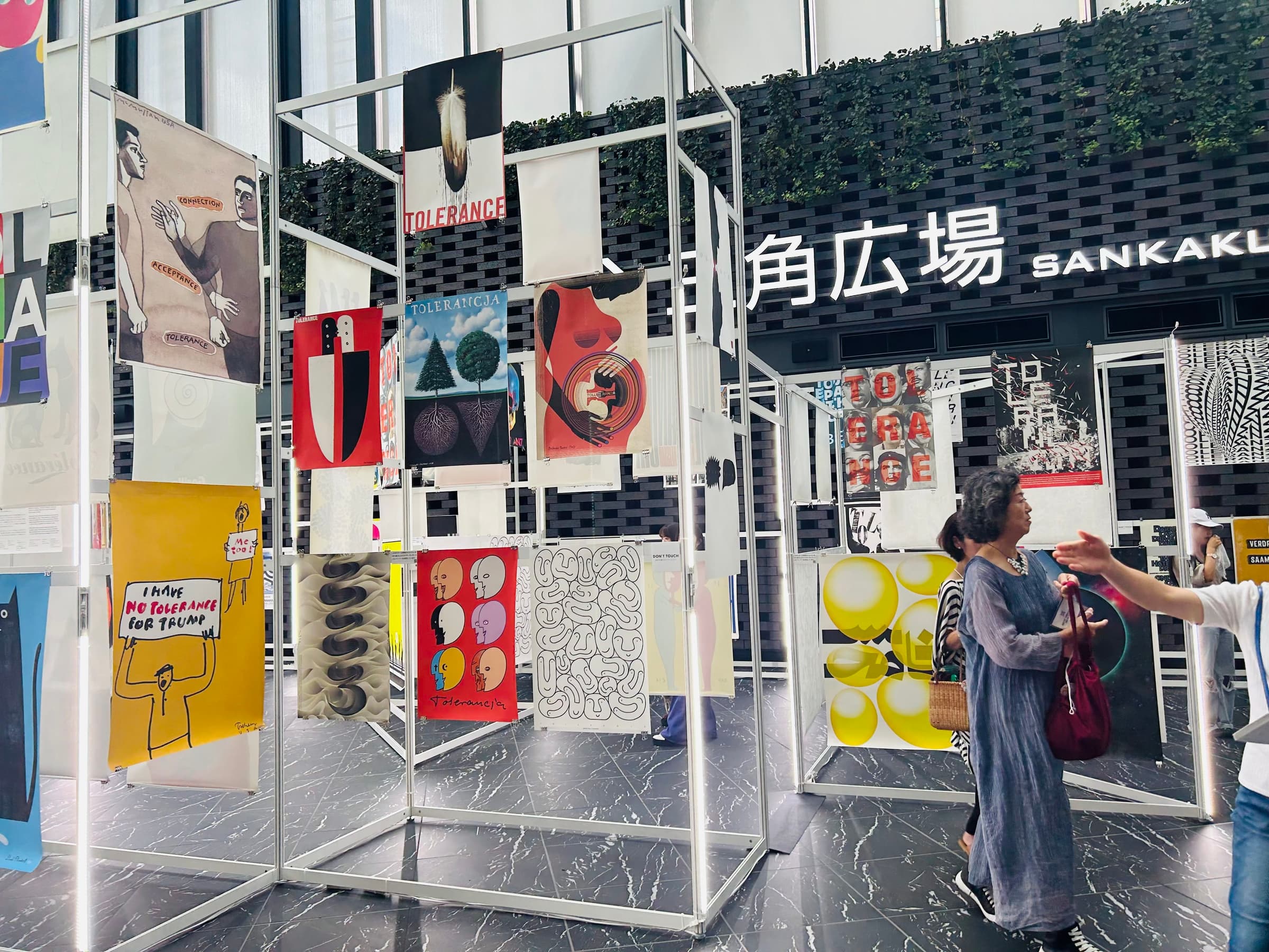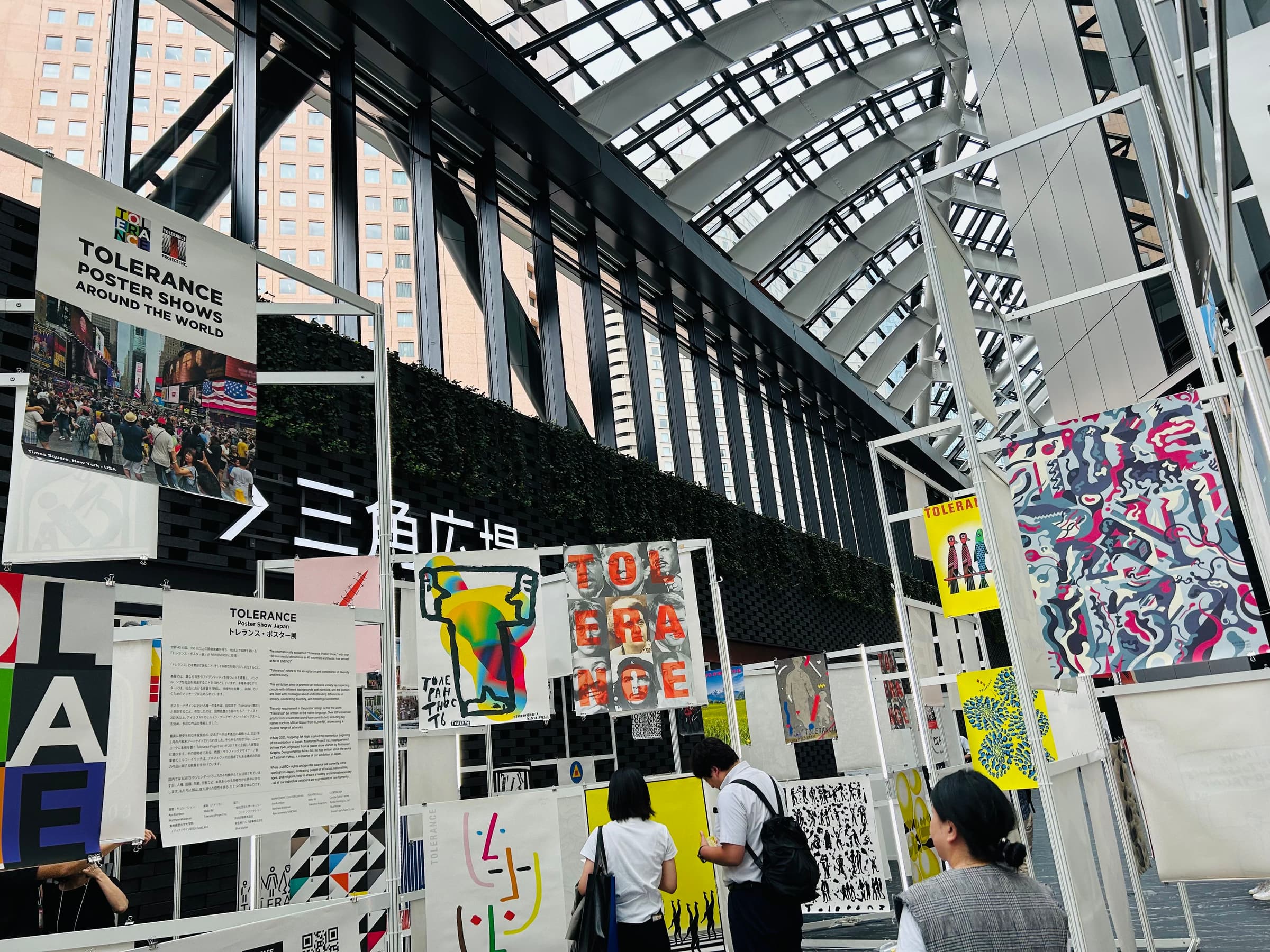 On September 7th, 2023 the second Tolerance Poster Show in Japan was held as part of the NEW ENERGY TOKYO Creation Festival at the Shinjuku Sumitomo Building Triangle Plaza in front of the Tokyo Metropolitan Government Building. 120 posters were displayed next to the entrance. Based on the festival's concept of ethical thinking, the posters were printed on up-cycled paper made from pre and post consumer fabric scraps. The show won the prestigious Ethical Award selected by FRaU magazine and the festival organizers.