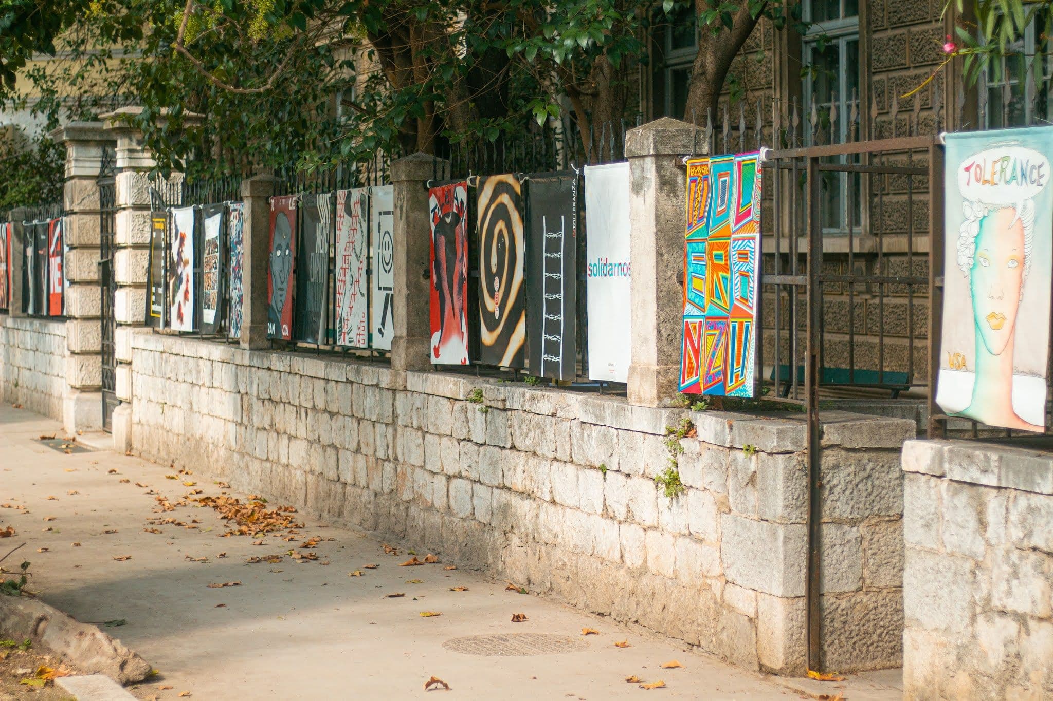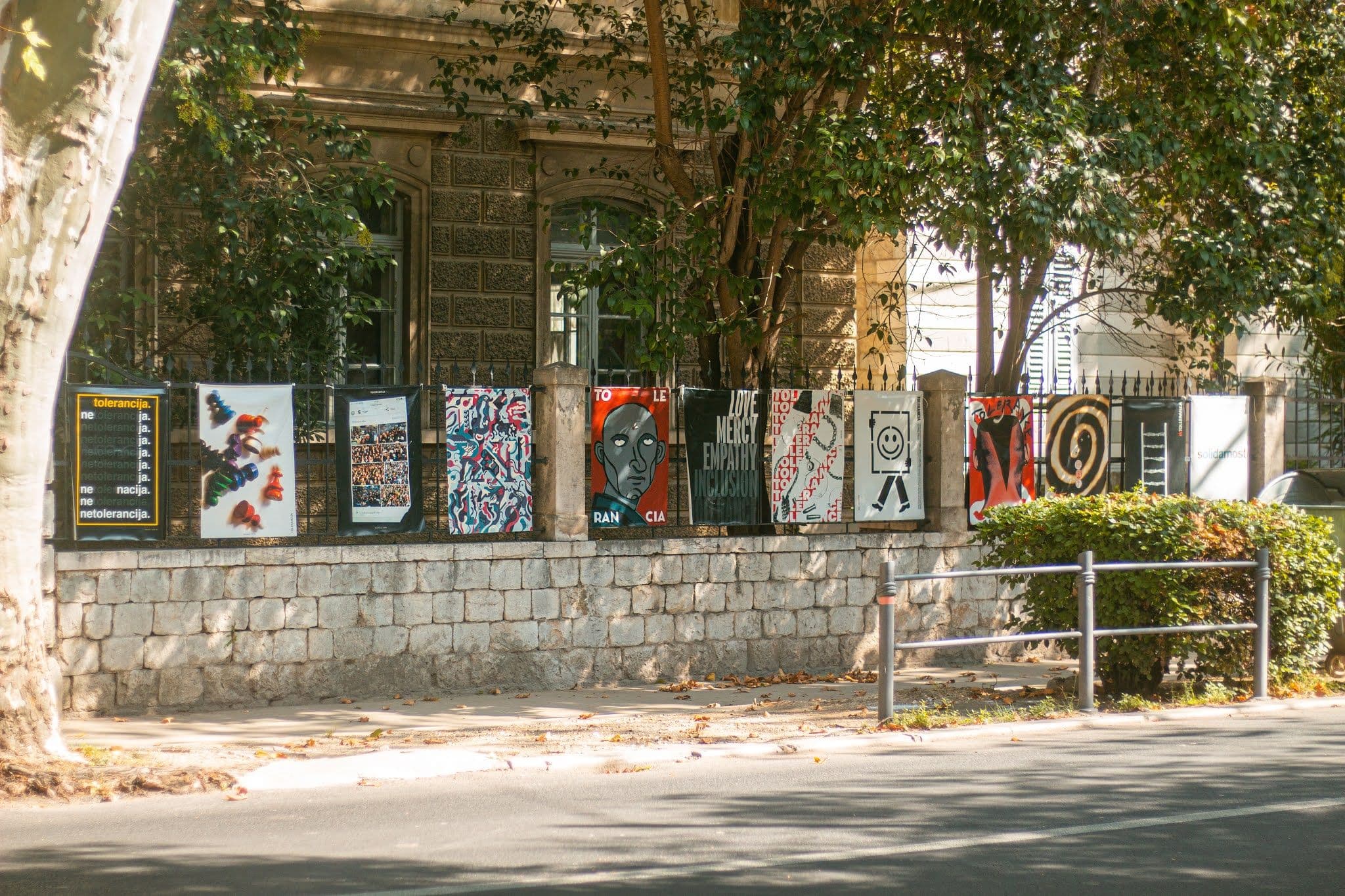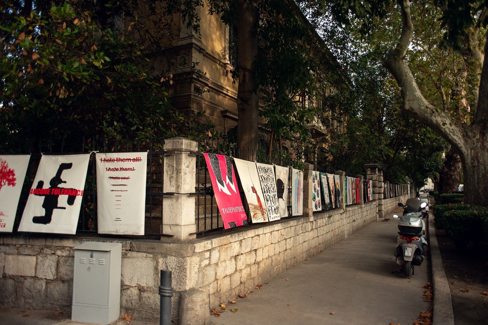 On October 1st, after the Tolerance Poster Show was taken down at Split riva, the students of the Design of Visual Communications Department at Academy of Art (Umjetnička akademija) in Split decided to "recycle" the poster/banners. They hung them on a fence surrounding the Academy and because the banners are two sided, they will be rotated.