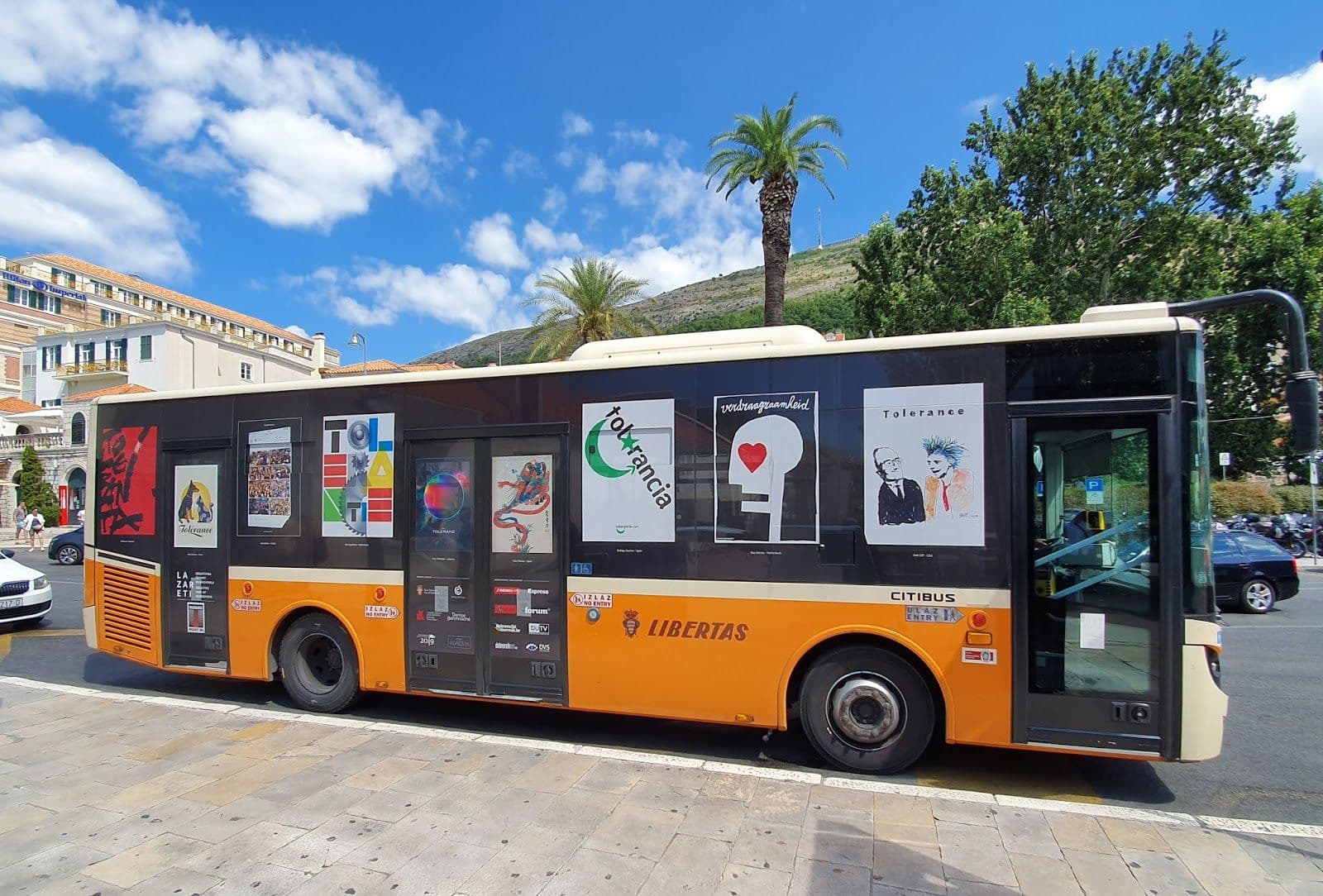 From August 14th to October 17th - Public City Transport in Dubrovnik, carried by the 'Libertas' company. Four buses on four different bus lines running from 5:00-24:00 h throughout the city and connecting all its parts with the city center are displaying around 80 posters of Tolerance Poster Show for this two month period.