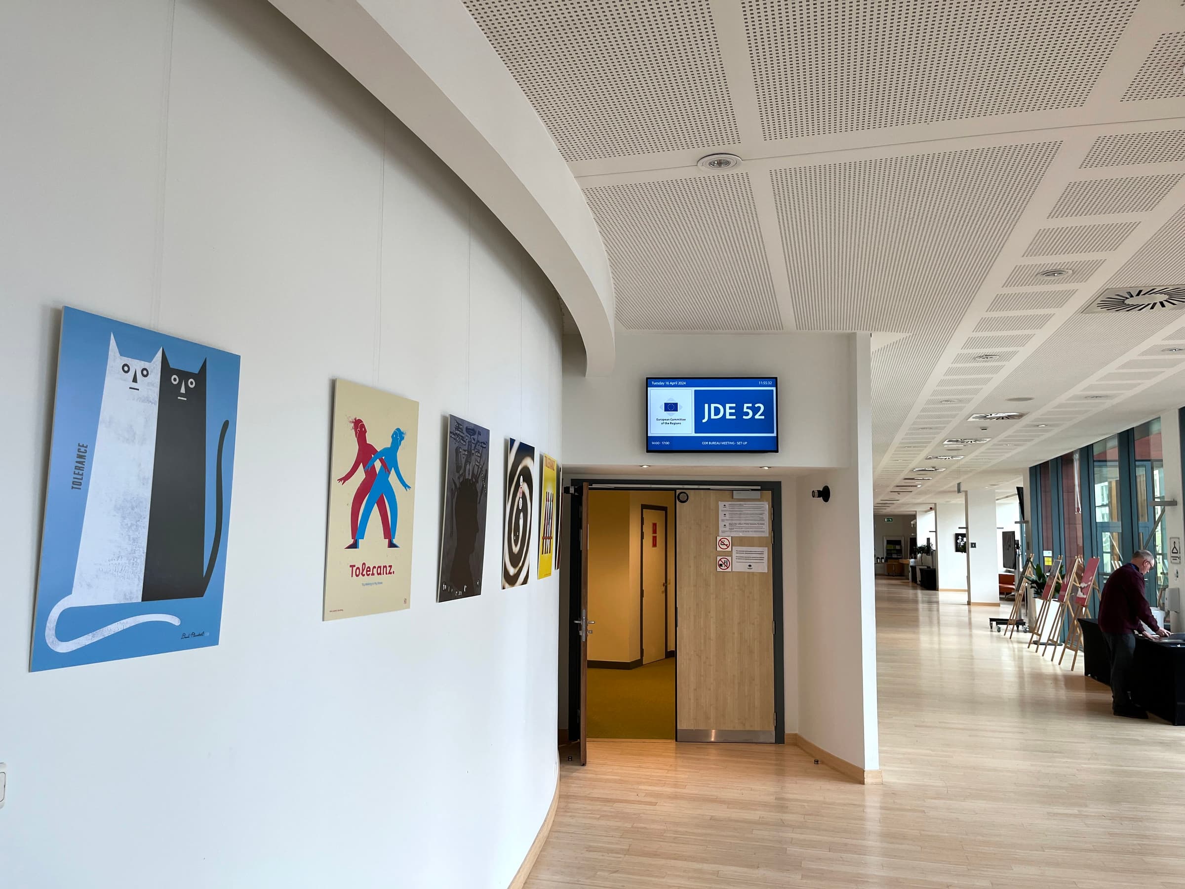 On April 16th, 2024, The Tolerance Poster Show opened a second show with more than 40 posters at the European Committee of the Regions and its CIVEX Commission ahead of its Bureau and plenary session meetings. It will be available to all members and staff in the Foyer 5 of the Jacques Delors building, Rue Belliard 99 in Brussels, until May 6th, including the Opening Day (May 4th), when all the visitors and the general public can see it.