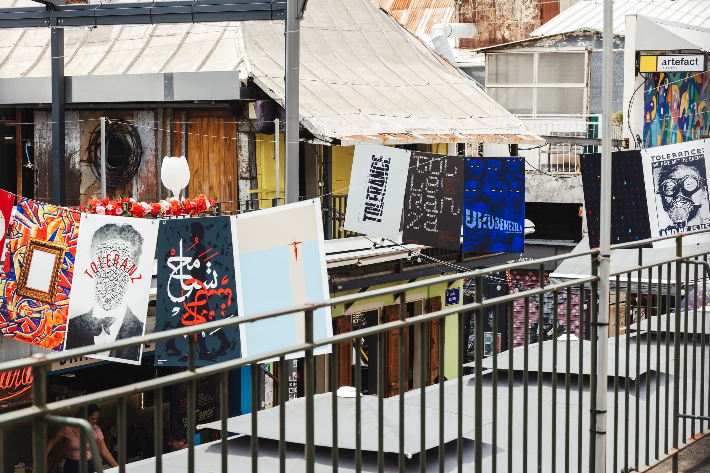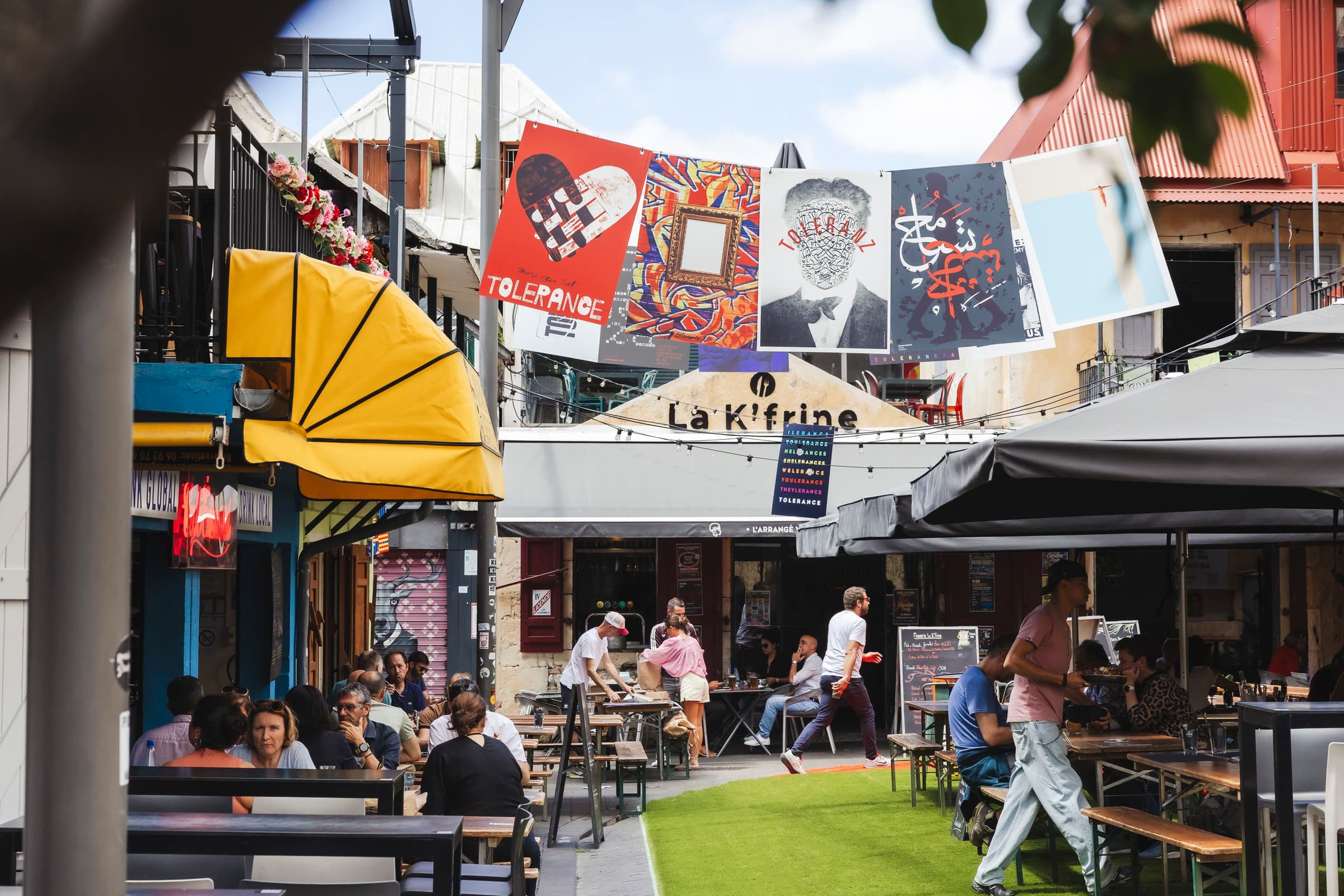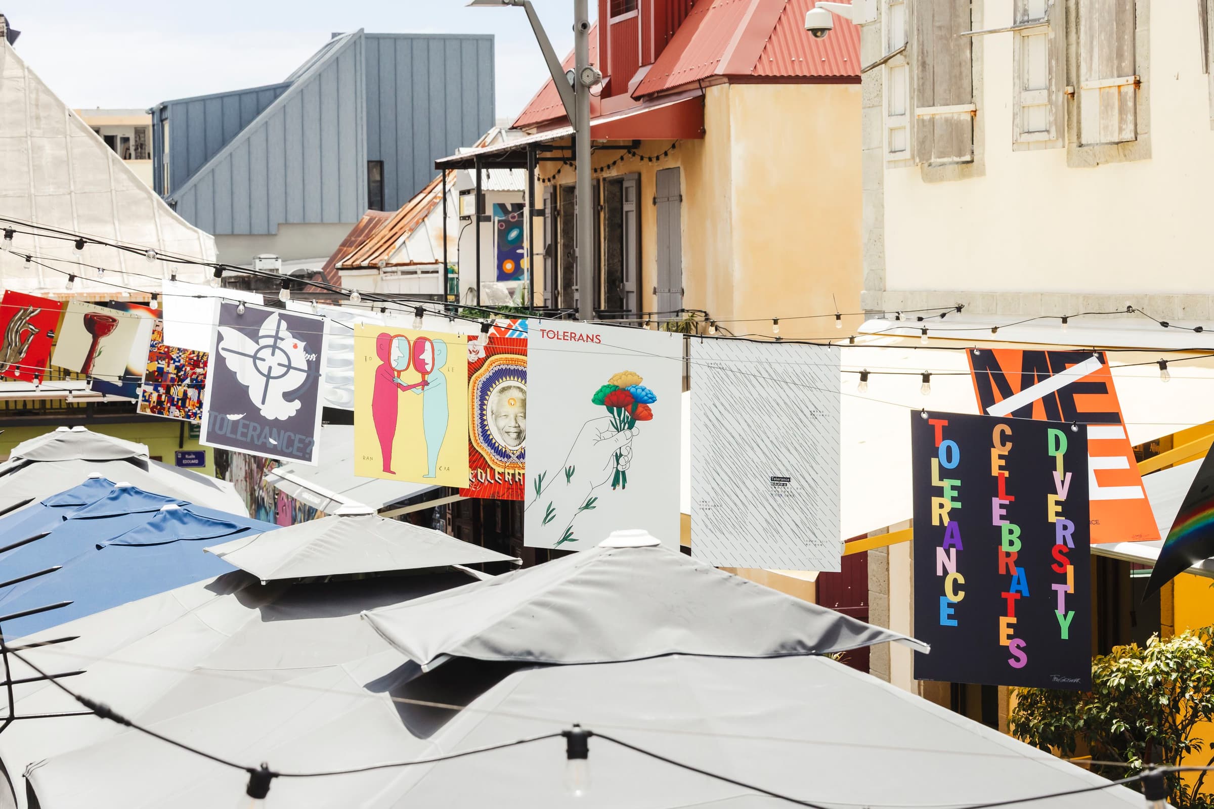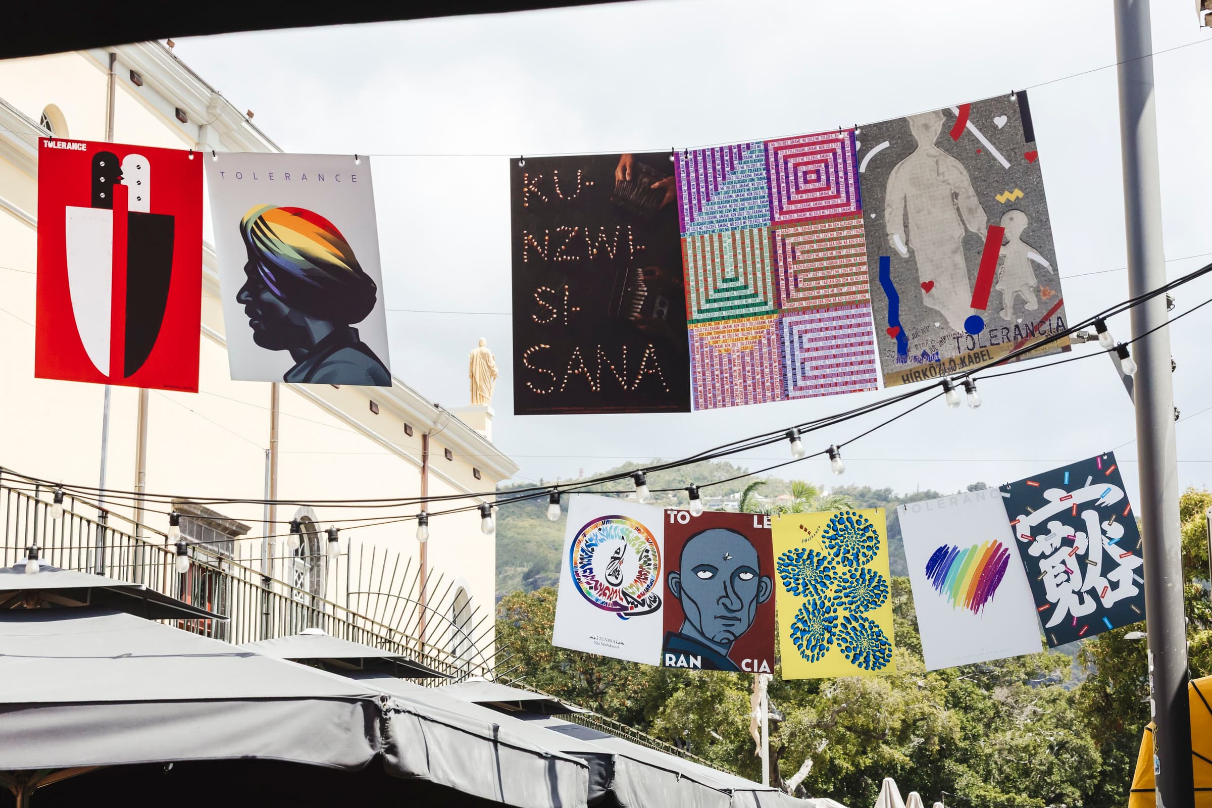 The Tolerance Poster Show opened on September 12th, 2025, on La Réunion as part of France Design Week 2025. The show was installed at Carré Cathédrale in Saint-Denis, a central and vibrant location where locals, visitors, and passersby converge—giving the posters an original context above terraces and communal spaces.