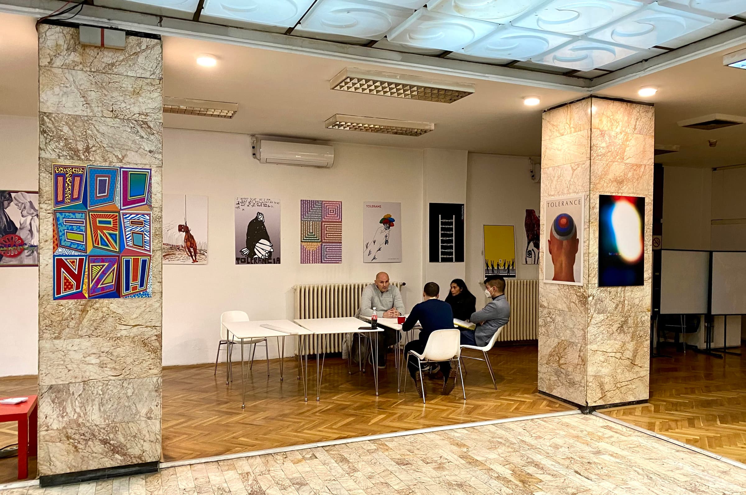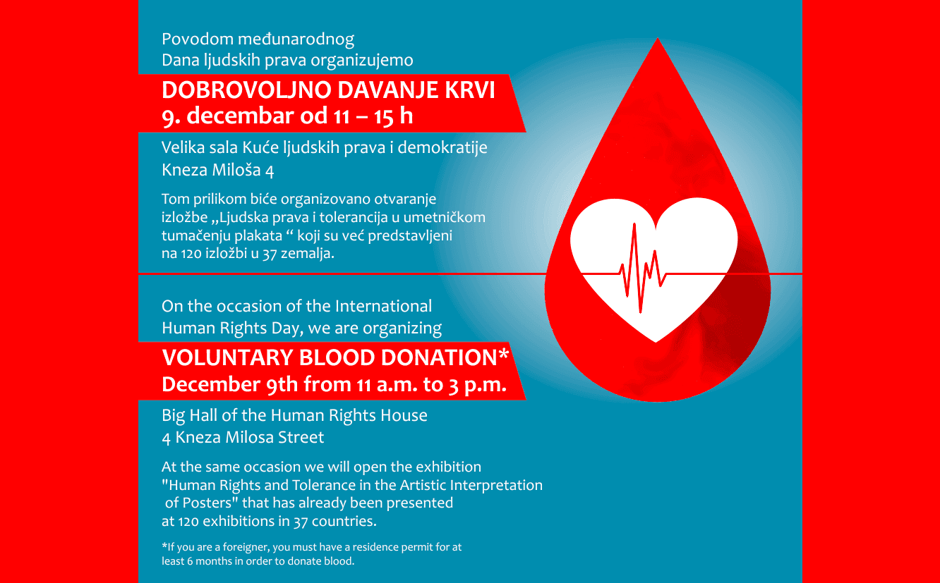 On December 10th 2021, we had the opening of a small Tolerance Poster Show at Human Rights House Belgrade (Kuća ljudskih prava Beograd) in Serbia. In celebration of Human Rights Day, they organized voluntary blood donation in the Big Hall at their headquarters. For this occasion, they decided to decorate the Big Hall with 30 Tolerance posters.